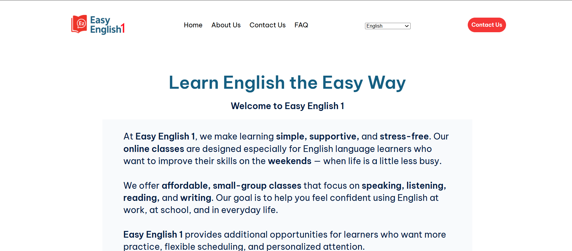 The Easy English 1 website presents English learning content in a simple, user-friendly way. It’s structured to help visitors easily explore lessons, resources, and language tools that make learning English more accessible and effective.